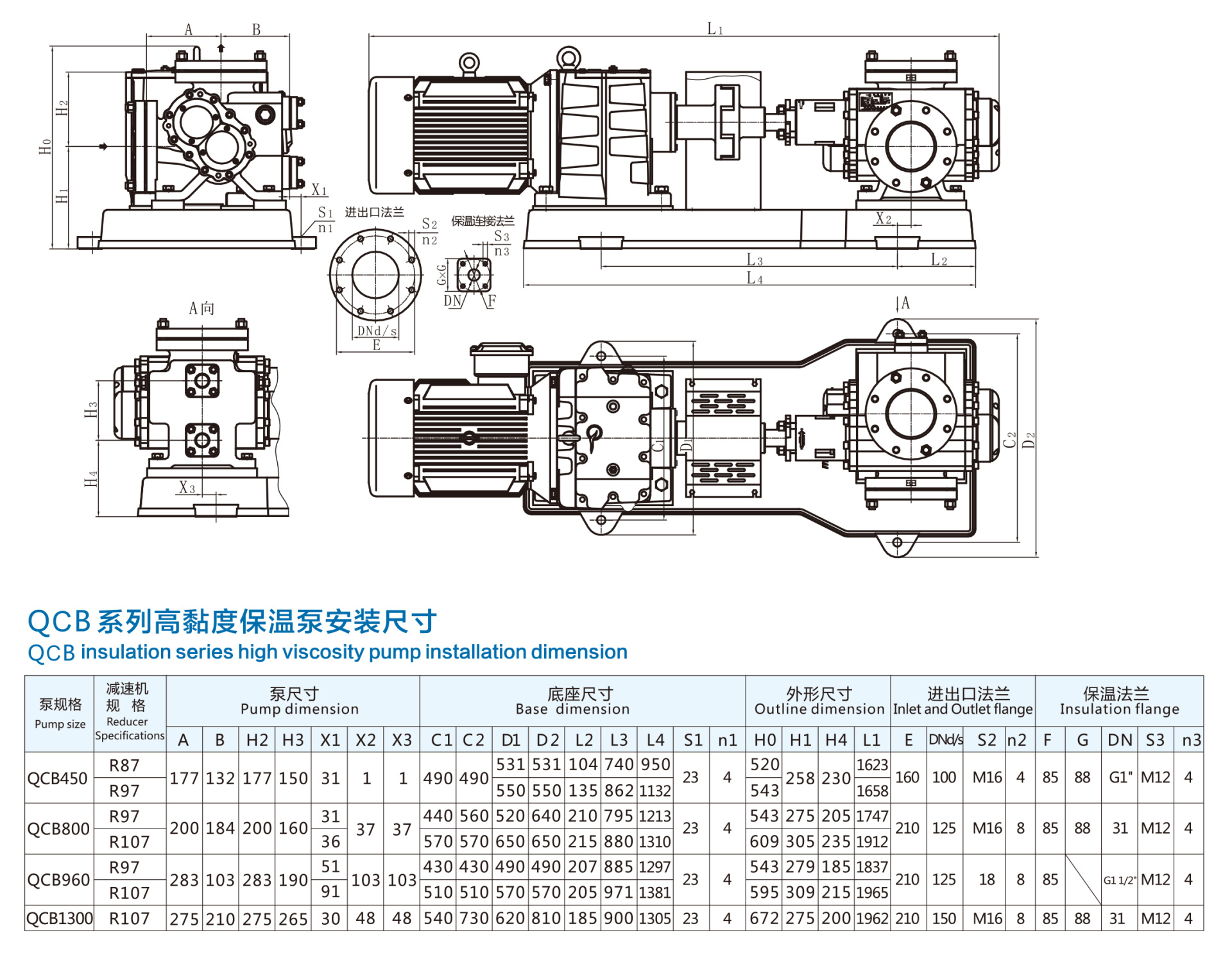 Technical Parameter Table for QCB450 Series High Viscosity Insulation Pump